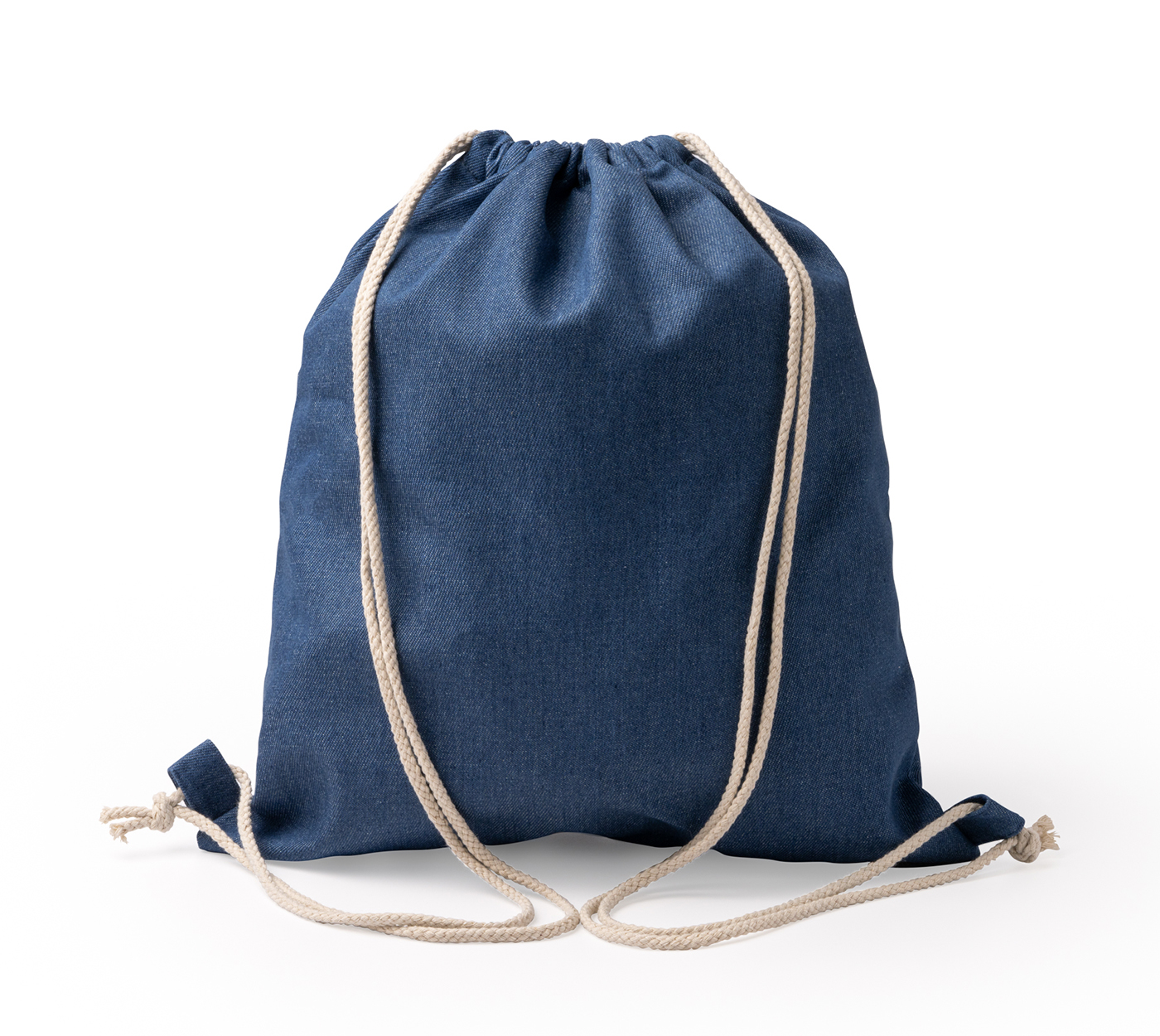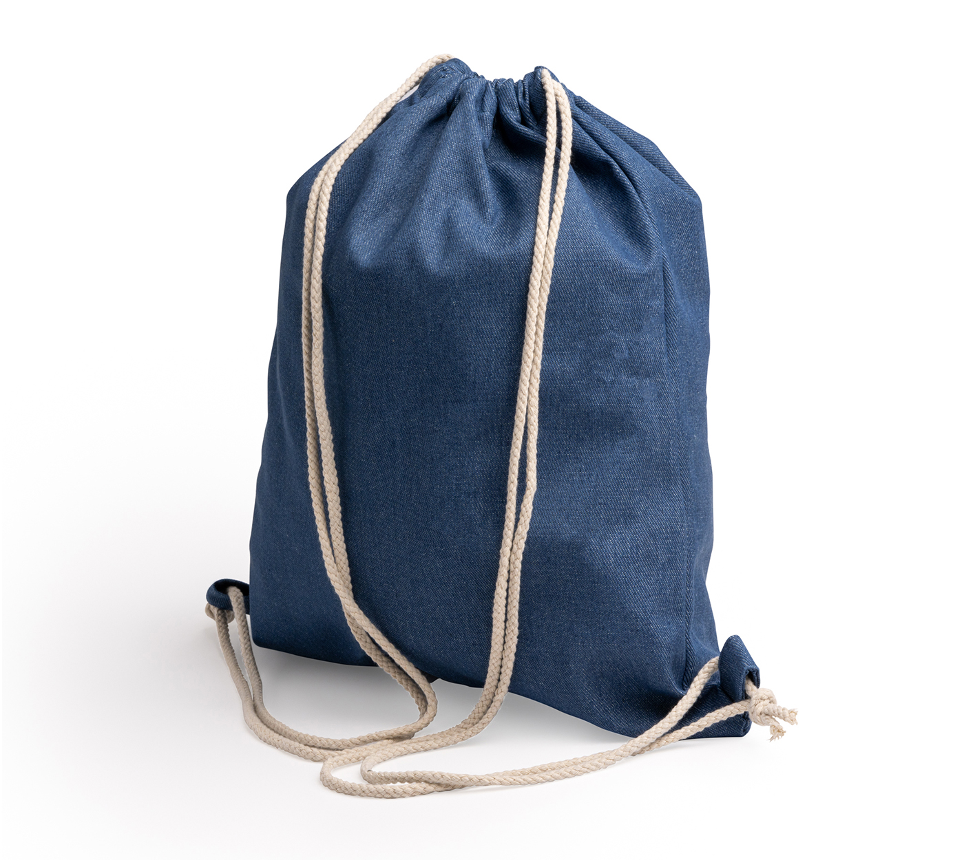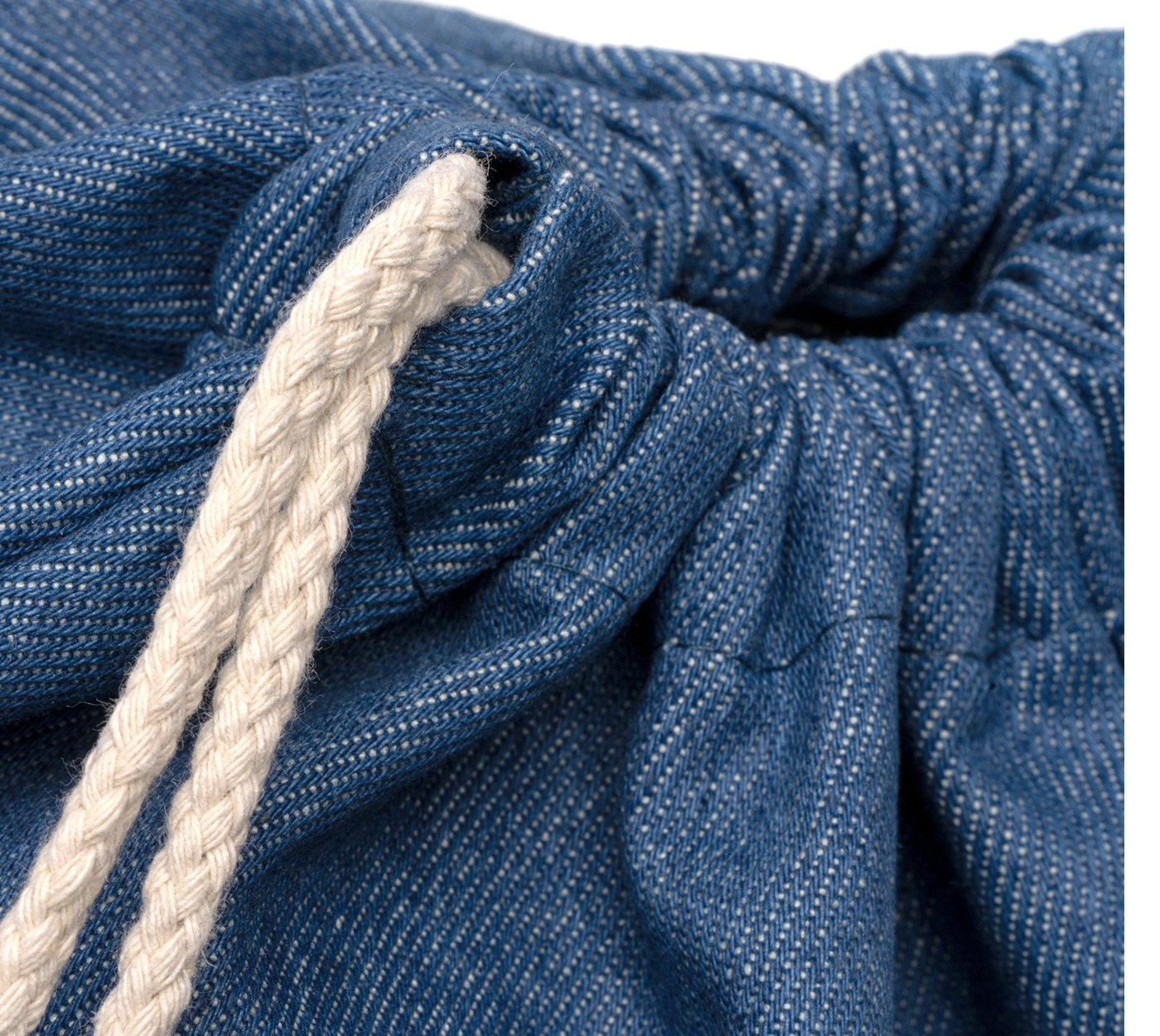 Λεπτομέρειες: Σακίδιο πλάτης με κορδόνι από ανακυκλωμένο τζιν με βαμβακερά κορδόνια 8 mm. Διάσταση: 36cm/42cm
