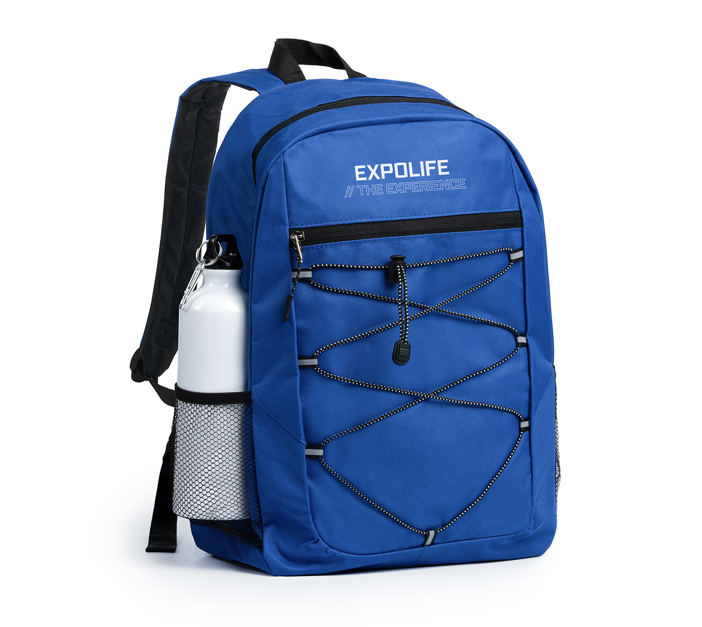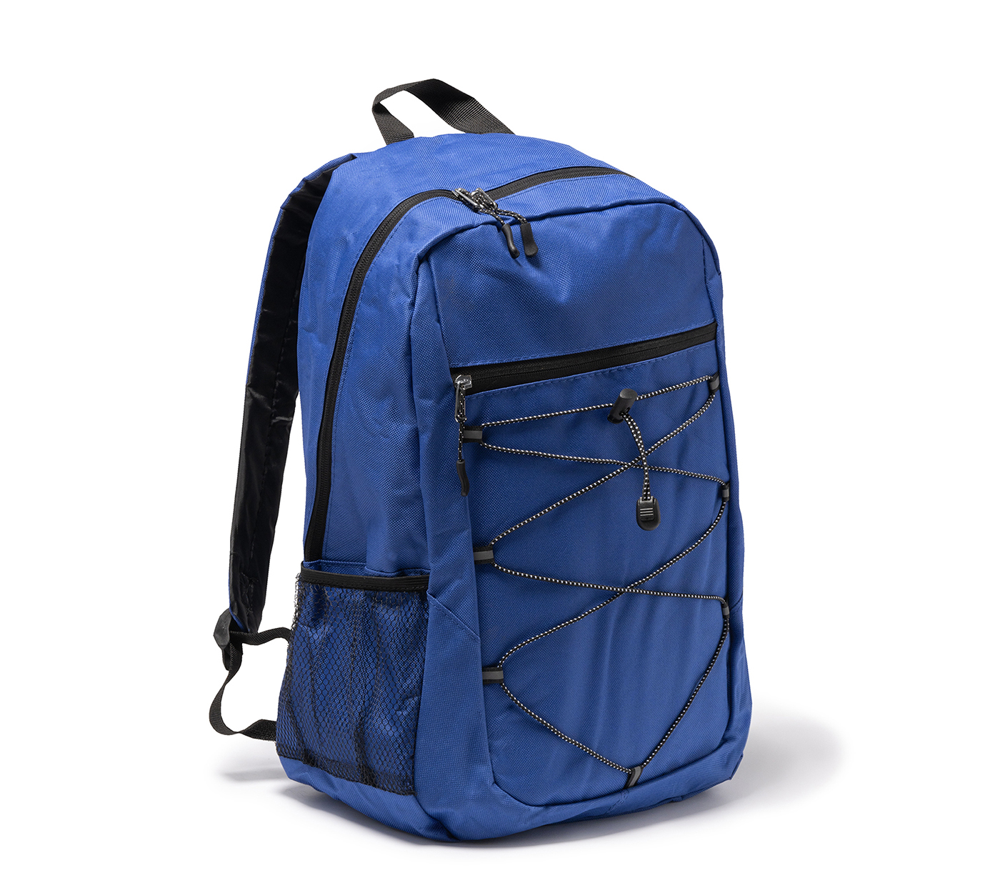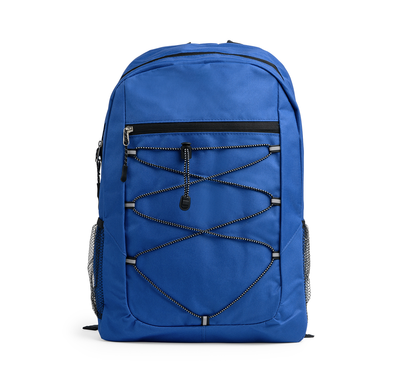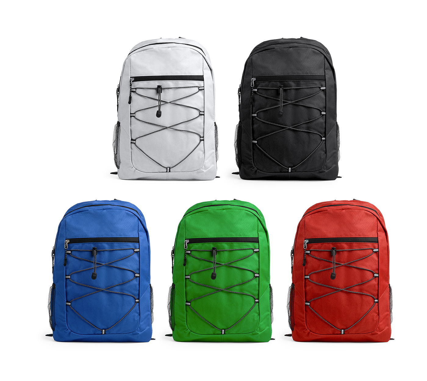 Λεπτομέρειες: Αθλητικό σακίδιο πλάτης από πολυεστέρα 600D. Κλείσιμο με φερμουάρ στην κύρια και μπροστινή τσέπη. Ελαστικό κορδόνι bungee μπροστά και πλαϊνές τσέπες από διχτυωτό υλικό. Επενδεδυμένοι ιμάντες πλάτης και ώμου. Διάσταση: 30cm/45cm/14cm