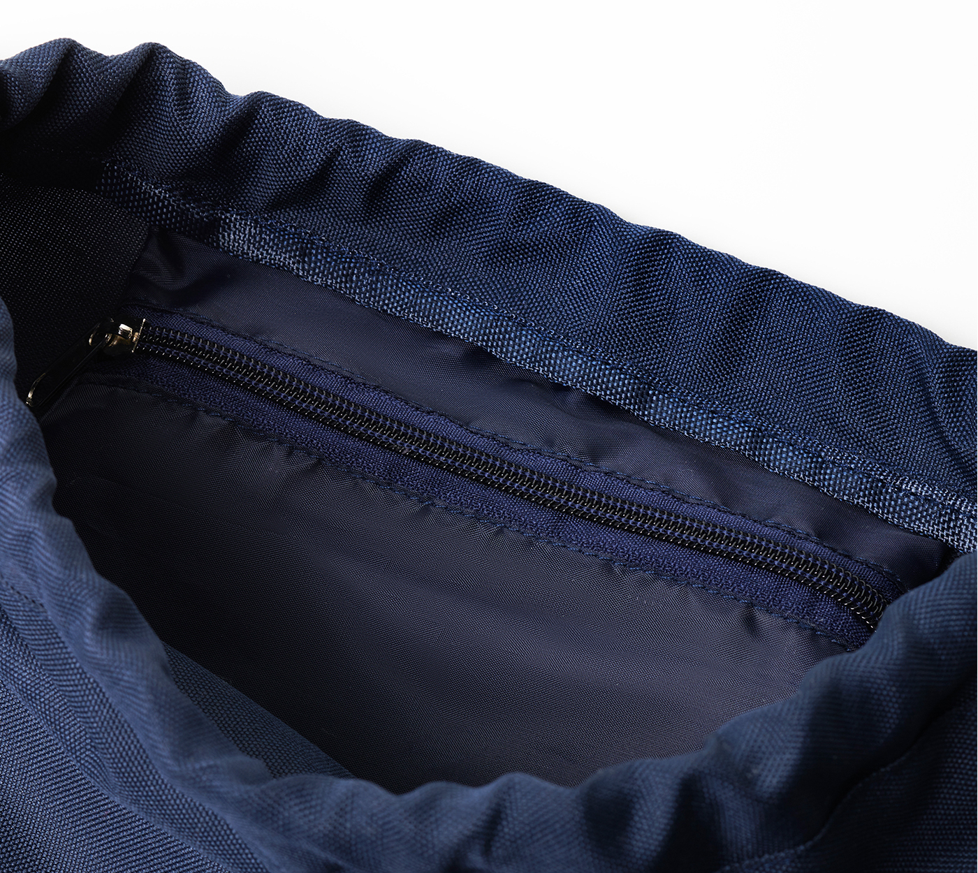 Λεπτομέρειες: Αθλητική τσάντα με κορδόνια σε απλό σχέδιο για εύκολη προσαρμογή. Ασορτί πλατιά κορδόνια. Εσωτερική τσέπη με φερμουάρ. 100% πολυέστερας 600D. 150 gsm. Διάσταση: 35,5cm/42,5cm