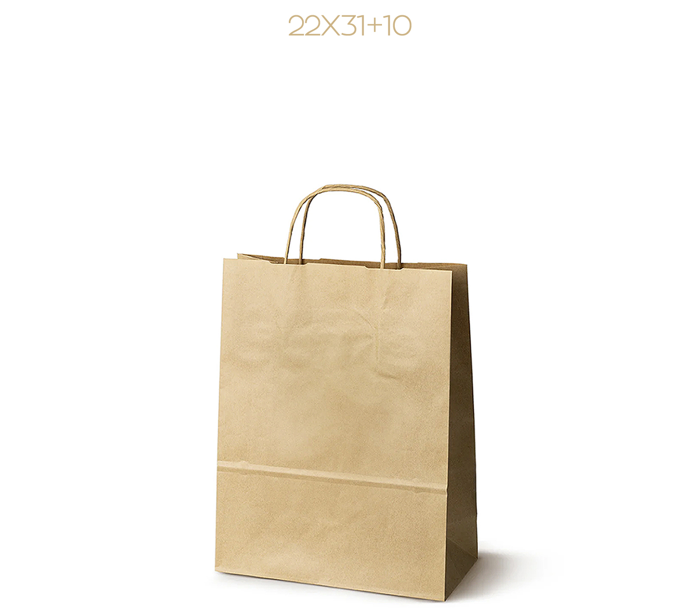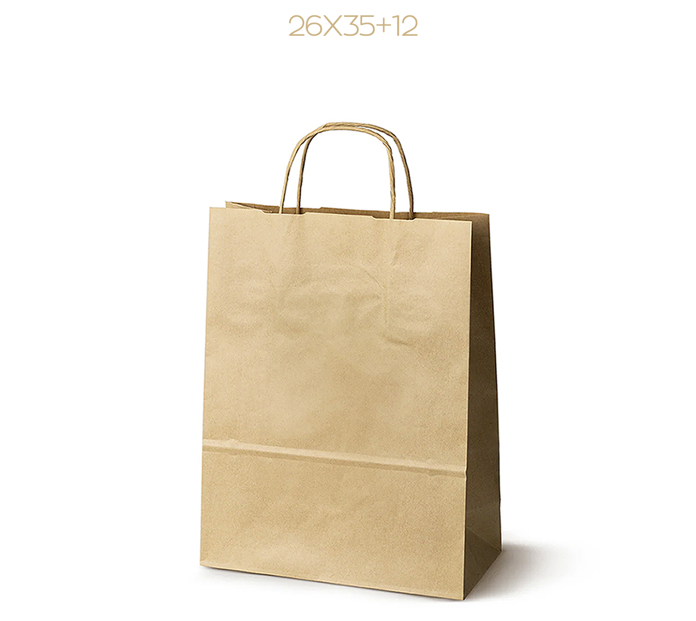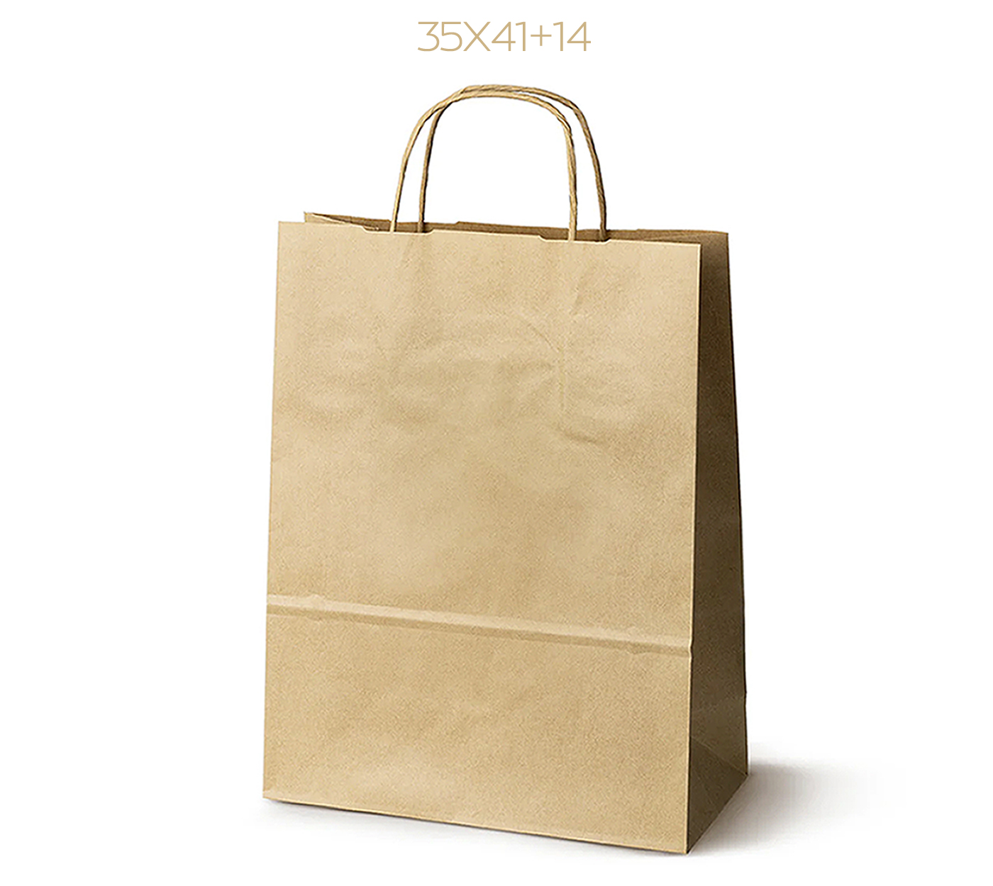 Λεπτομέρειες: Χάρτινη σακούλα κράφτ, 110 gsm με φυσικό τελείωμα, με ενισχυμένες κοντές στριφτές λαβές. ( Πλάτος x Υψος + Πιέτα )
