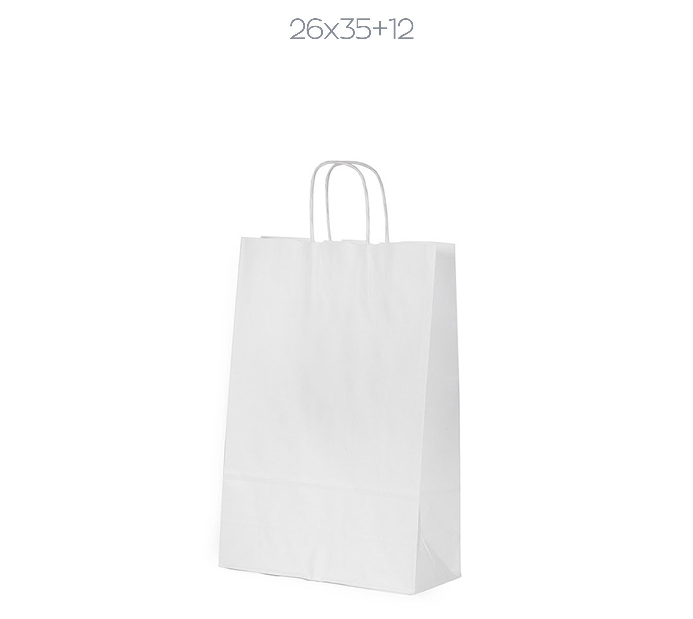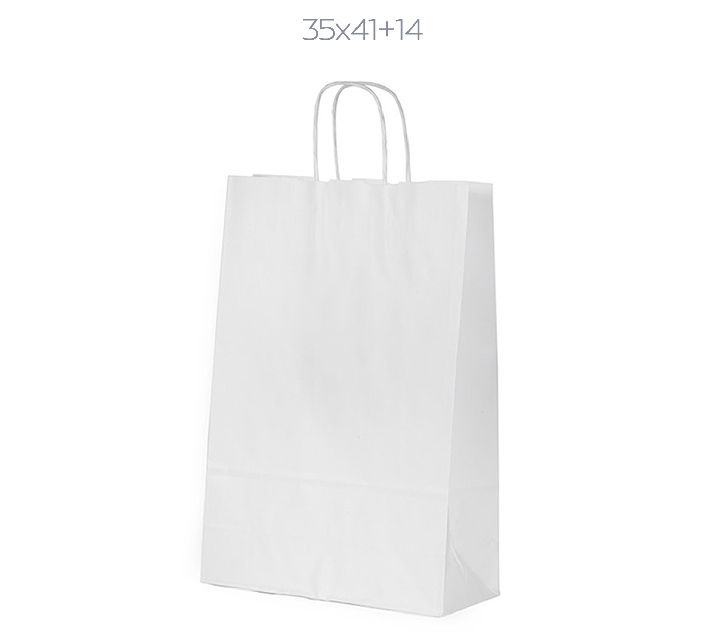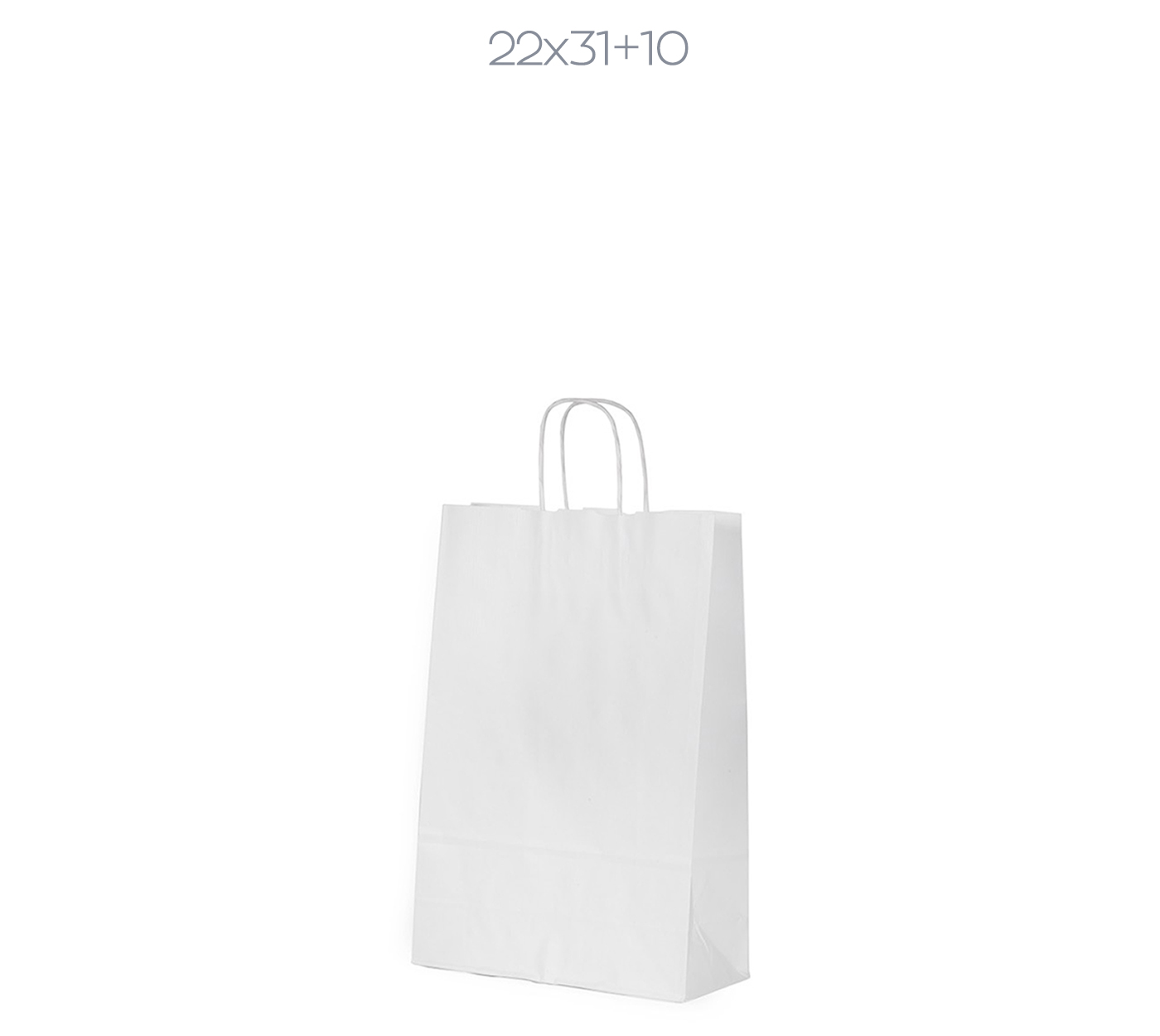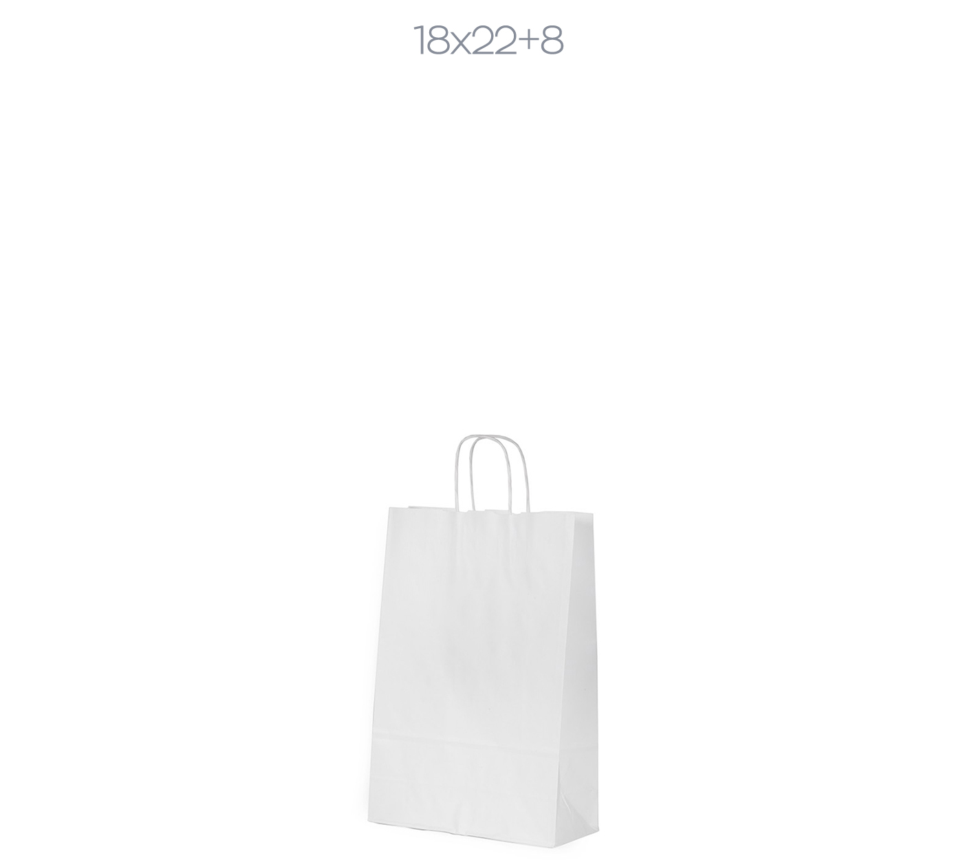 Λεπτομέρειες: Χάρτινη σακούλα λευκή, 110 gsm με φυσικό τελείωμα, με ενισχυμένες κοντές στριφτές λαβές. ( Πλάτος x Υψος + Πιέτα )